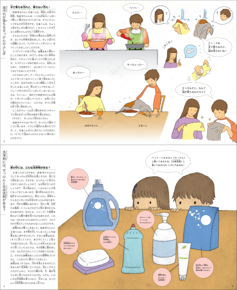 手や顔を洗う、食器を洗う、服やタオルを洗たくする…毎日の生活のなかでわたしたちはいろいろなものを洗っています。そこで欠かせないのがさまざまな「洗浄剤」。なかでも、せっけんは、古代ローマ時代にいけにえの羊の油脂と灰が混ざってできたという伝説もある、昔から使われてきた、環境やヒトにもやさしい洗浄剤です。