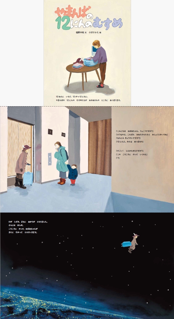 12年に一度、12月12日、山姥の12人の娘がお母さんのところに集まる。都会の夜空をコロコロに乗って。海や山を越え鷲や白熊や龍に乗って。めざすは北の森。山姥と動物たちは、眠る場所をつくったり、料理をつくったり、12人の娘を迎える準備に大忙し。突然、山が鳴き、風が吹き荒れた。さあ、宴を始めるよ! 『岸辺のヤービ』の画家・小沢さかえが描く、斬新な現代の山姥の宴。